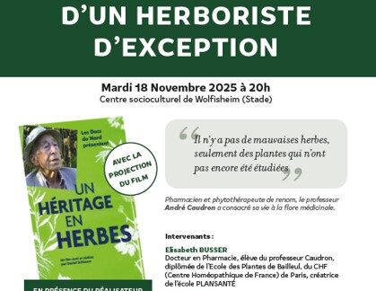 En conférence à BiObernai, les 19-20-21 septembre, retrouvez Christian BUSSER (Dr en pharmacie et en ethnologie, Fondateur de l’Ecole Plantasanté), Elisabeth BUSSER (Dr en pharmacie, Co-fondatrice de l’Ecole Plantasanté), Claudia CHABOUTE (Infirmière DE, Naturopathe, Conseiller en plantes médicinales et aromatiques, Aromathérapeute), Laurent CLEMENCE (Traiteur, spécialisée en cuisine de plantes sauvages), Anne-Lise COLLET (Ingénieure chimiste, DU en micronutrition, Naturopathe, Diététicienne-Nutritionniste en formation), Céline DEBANT (Visiteuse Médical, Naturopathe, Conseillère en Fleurs de Bach, Réflexologue, Micro-nutritionniste), Audrey DRION (Naturopathe), François FRIEH (Naturopathe, Conseiller en plantes médicinales et aromatiques, Réflexologue, Praticien en Iridologie), Sandrine MUTSCHLER (Naturopathe, spécialiste des compléments alimentaires), Geneviève ROS (Infirmière DE, Naturopathe, Herbaliste, Praticienne en iridologie. Micro-nutritionniste), Ludivine SOMMER (Naturopathe et Entraineur Recabic accompagnée de Céline ROTH, Entraineur Recabic), et encore davantage sur le stand de l’École Plantasanté !